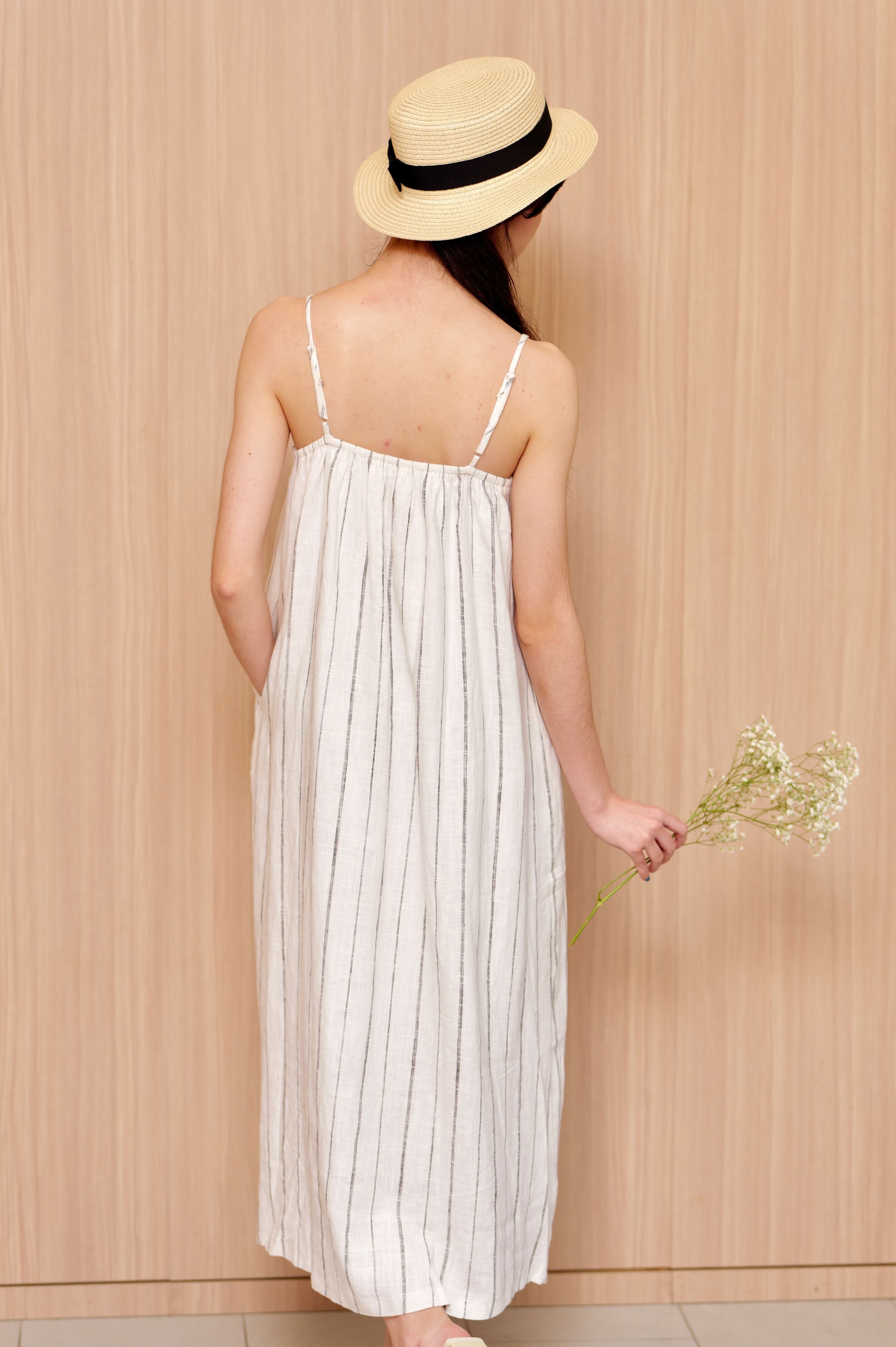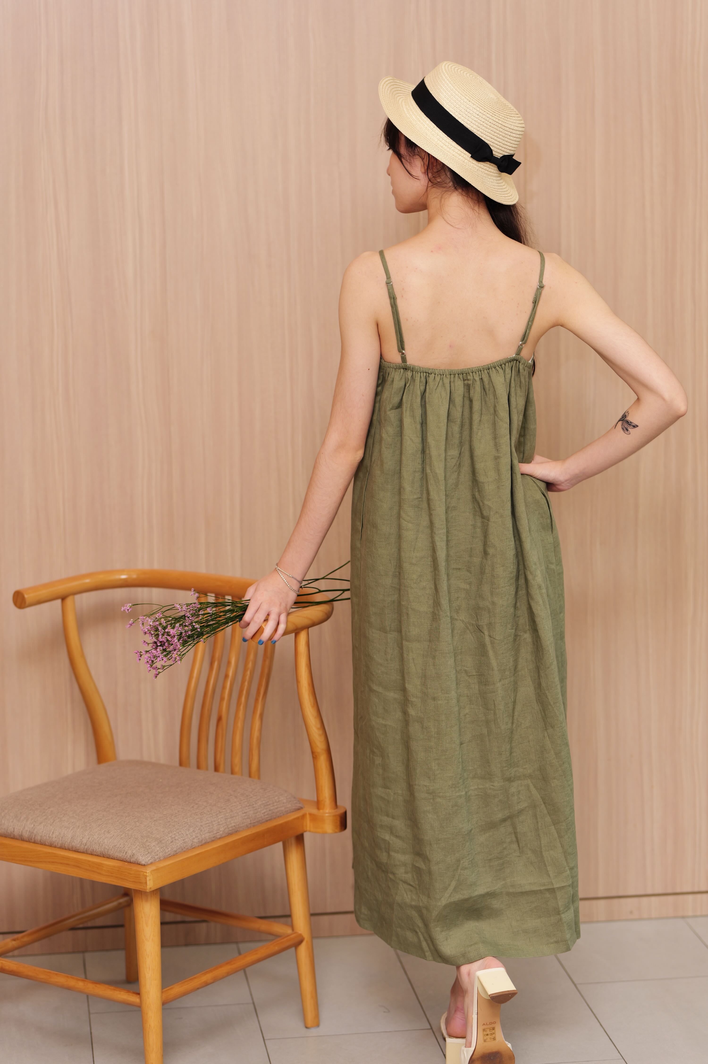 Spaghetti Straps Long Linen Dress