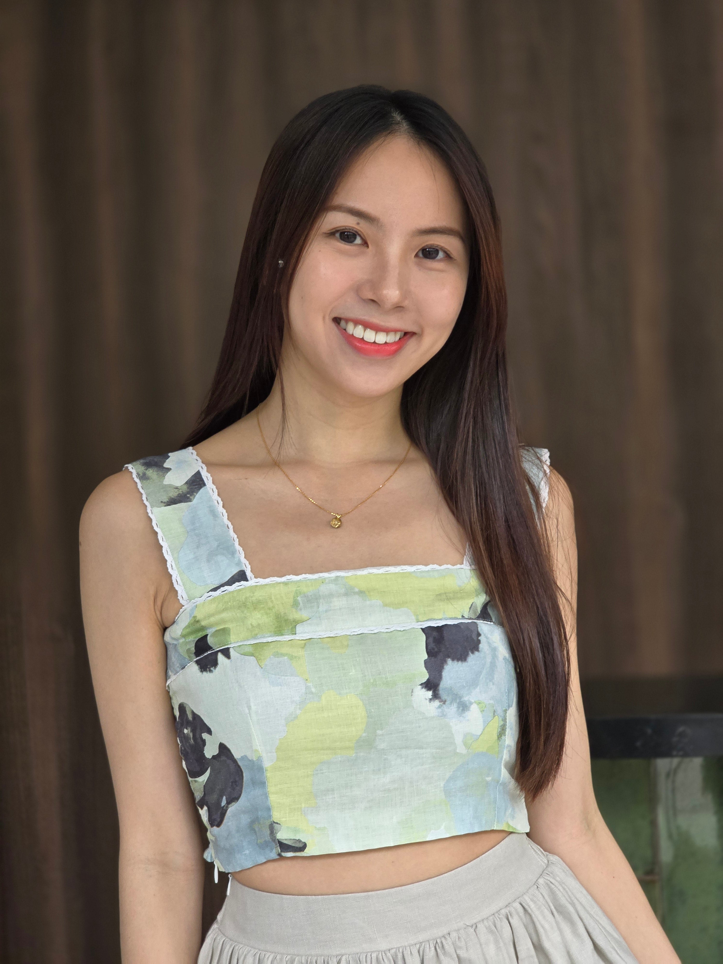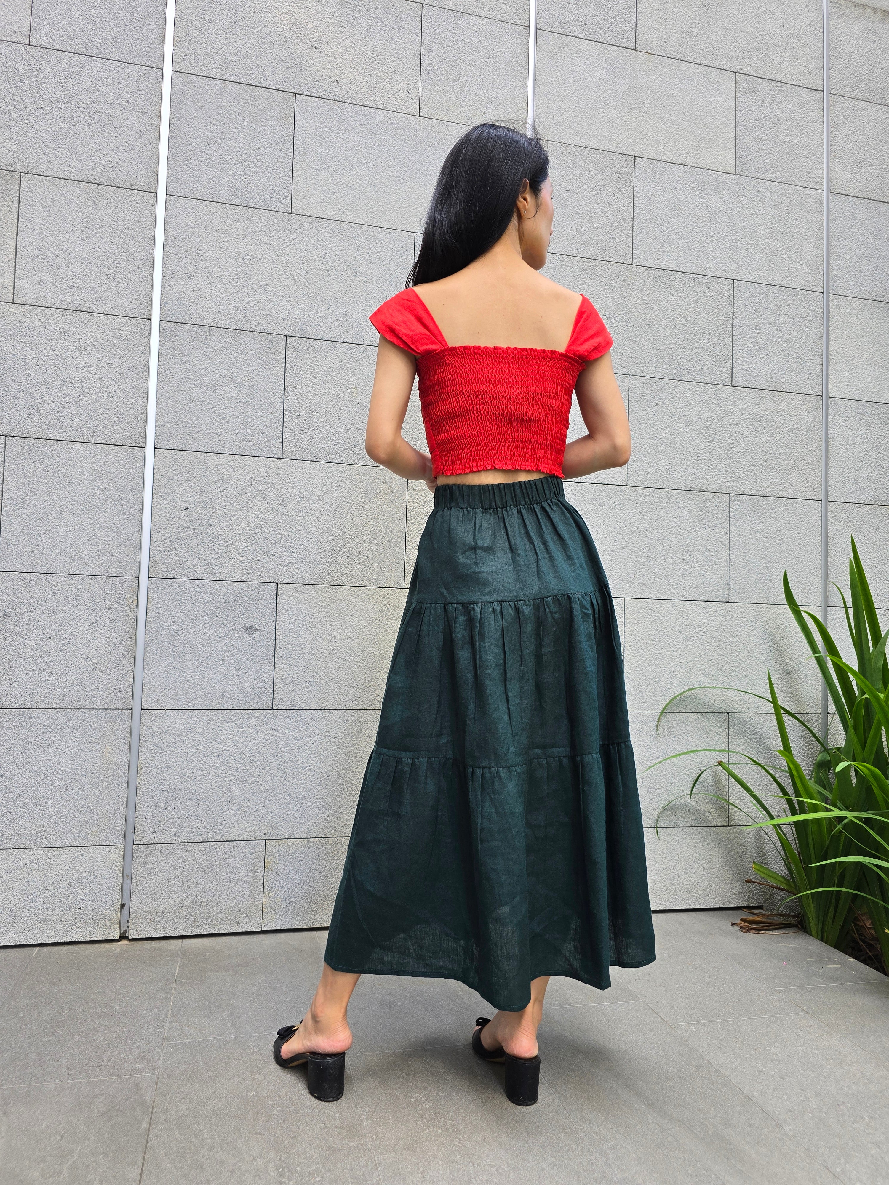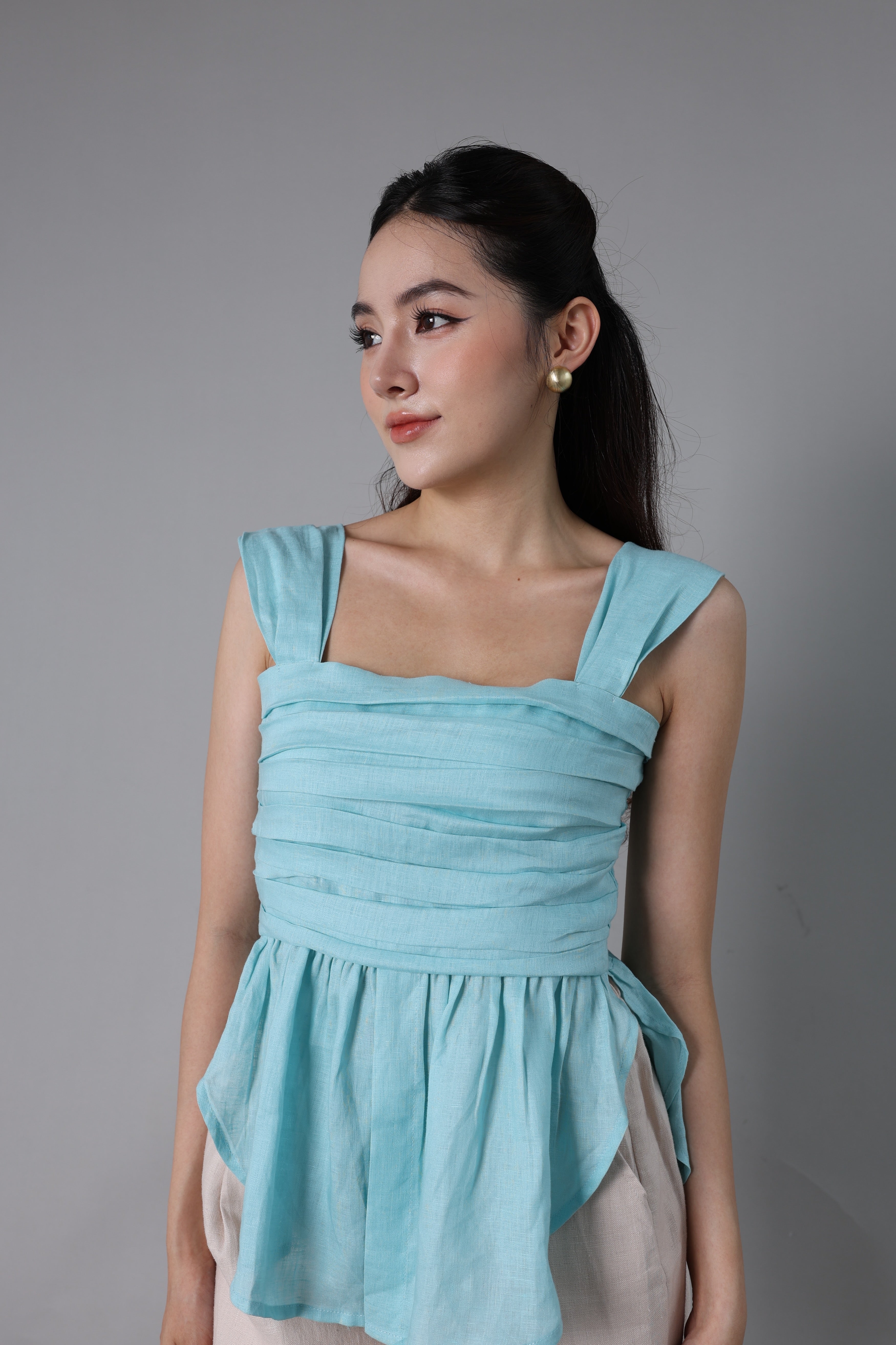 Ruched Bodice Linen Crop Top