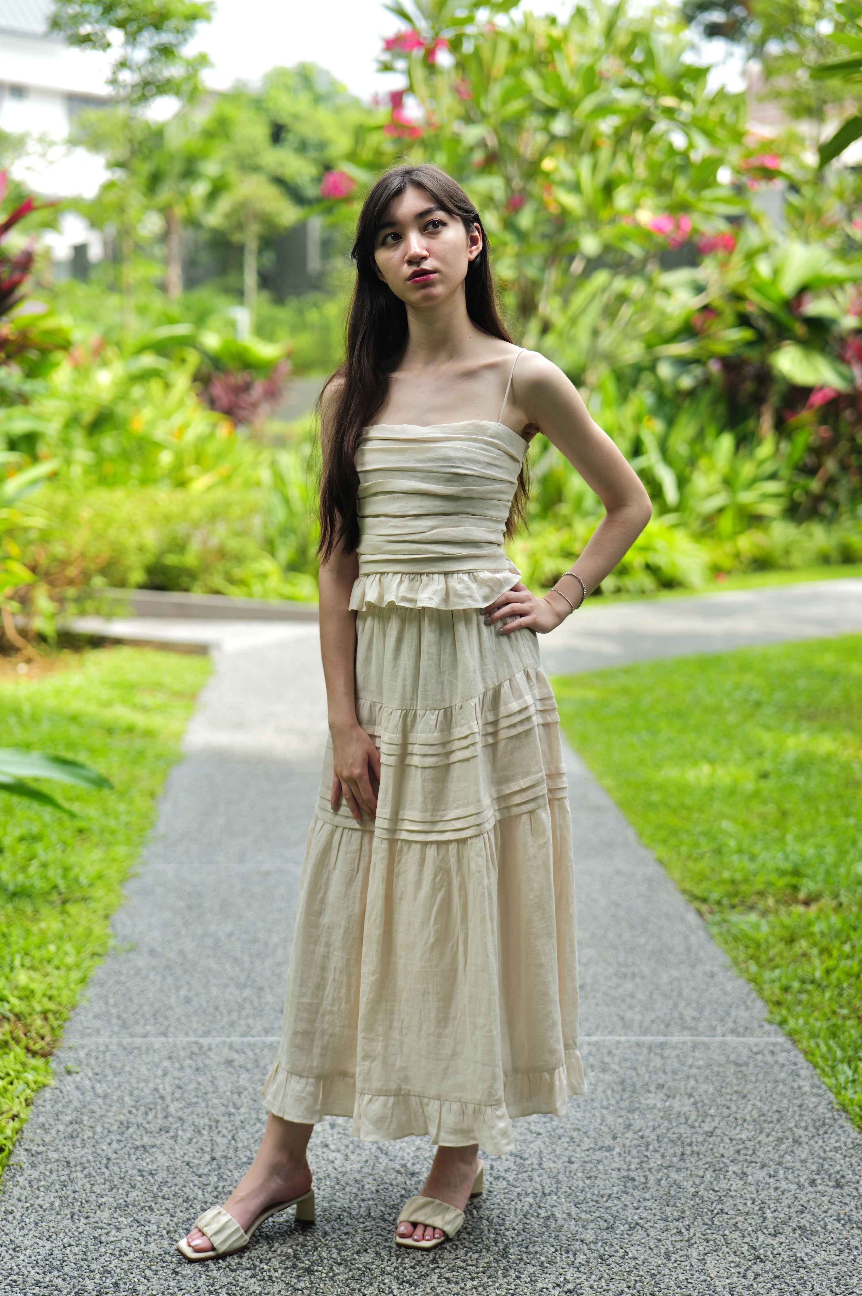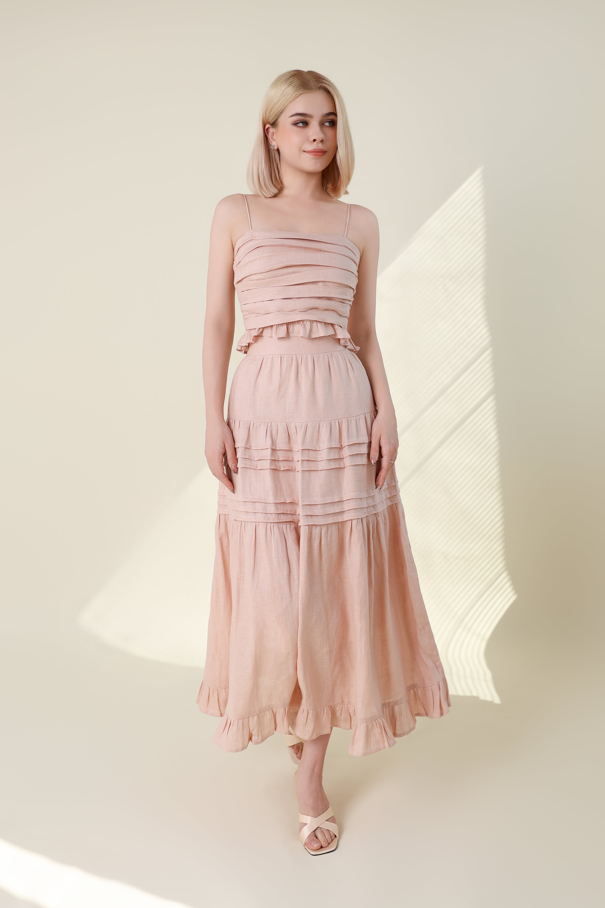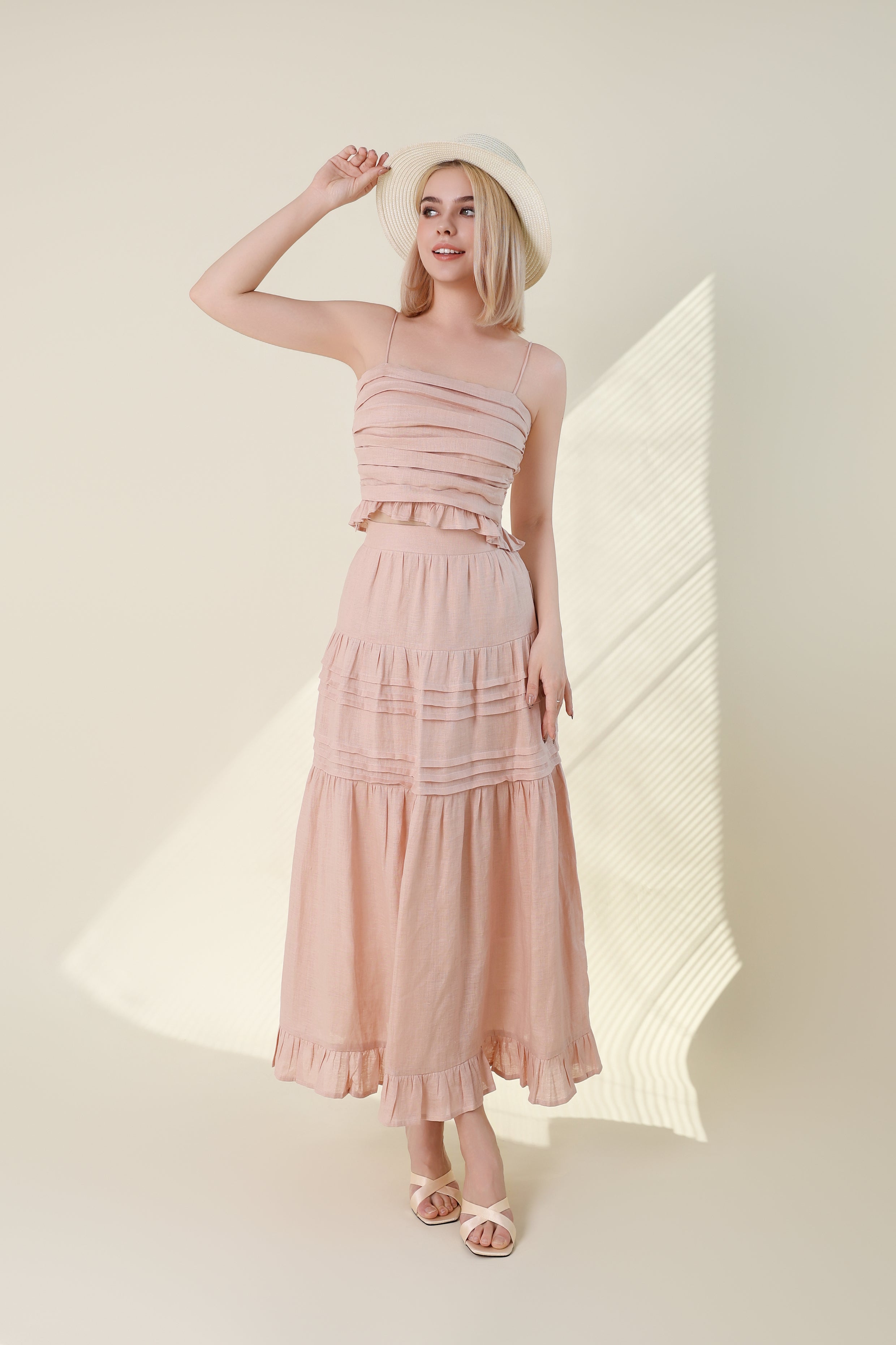 Ruched Bodice Linen Crop Top