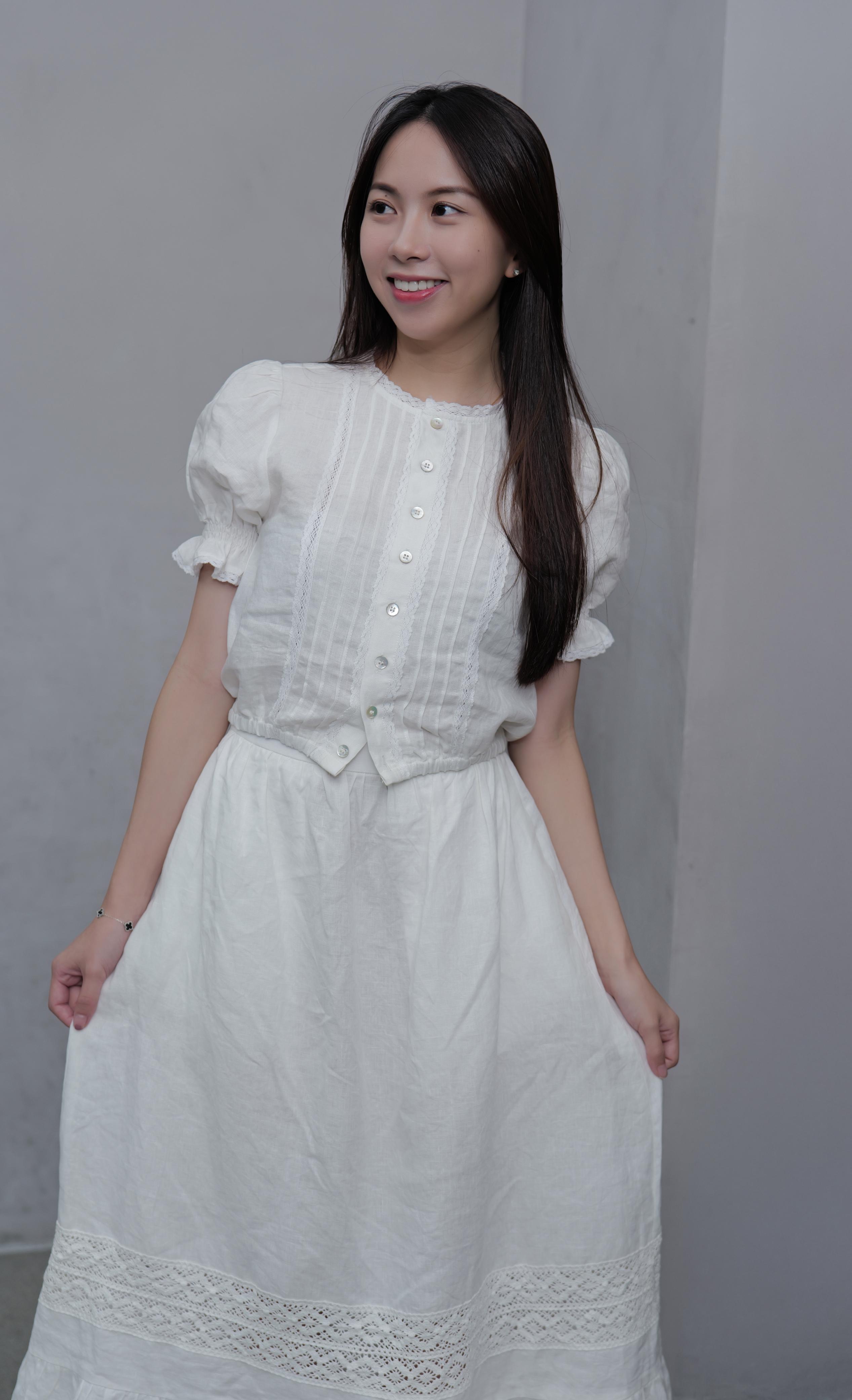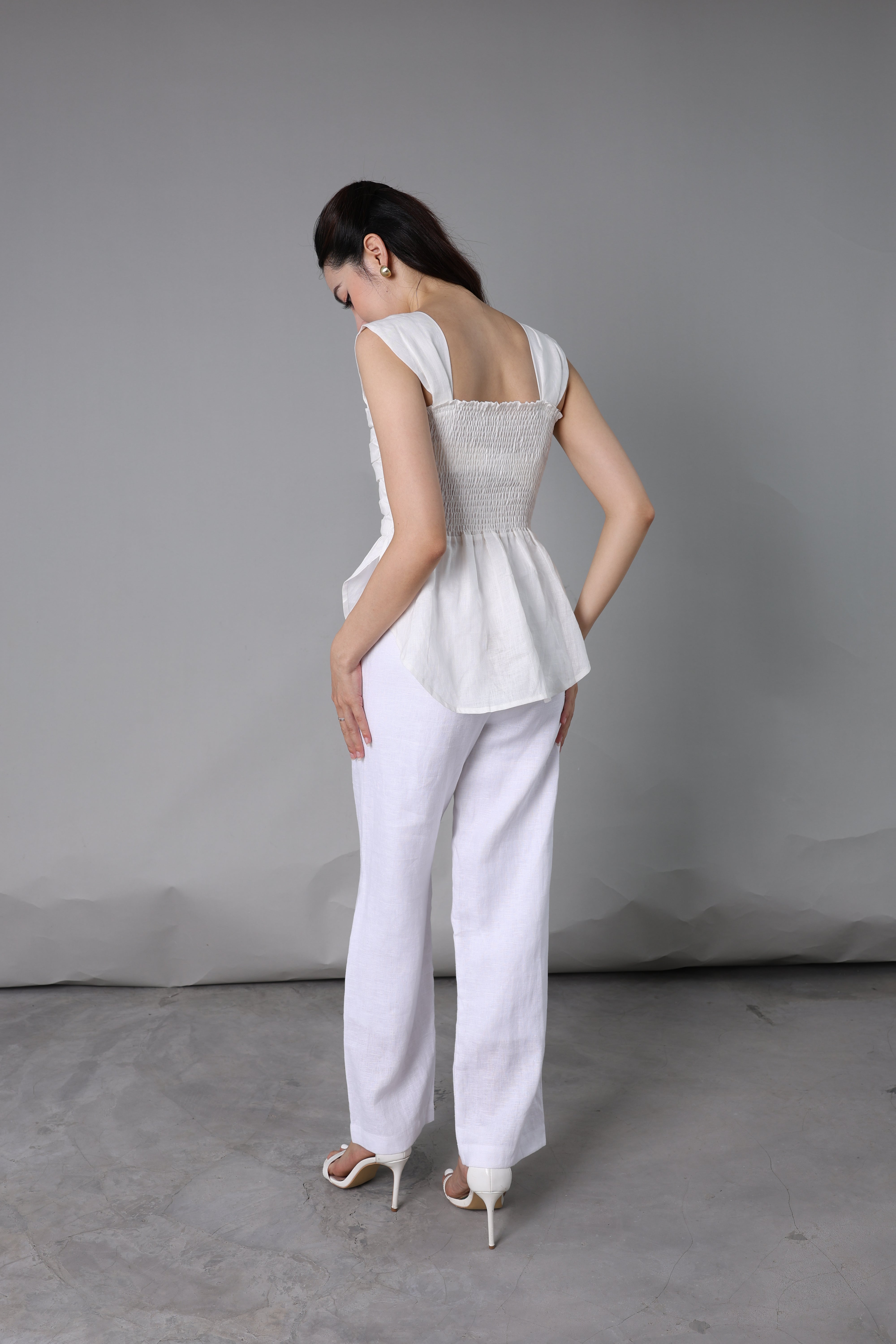 White Button-Back Linen Top