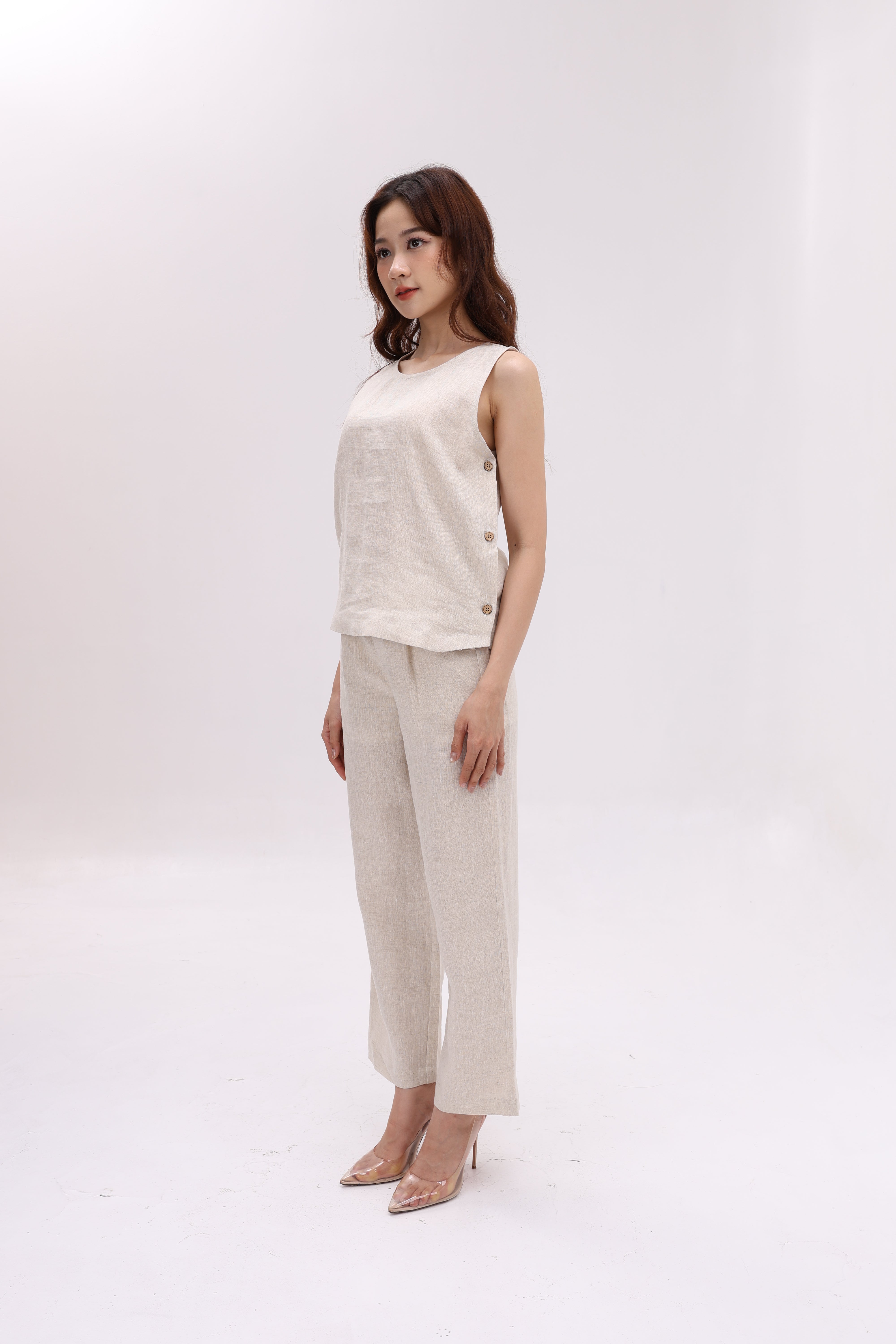 Side-Button Linen Top